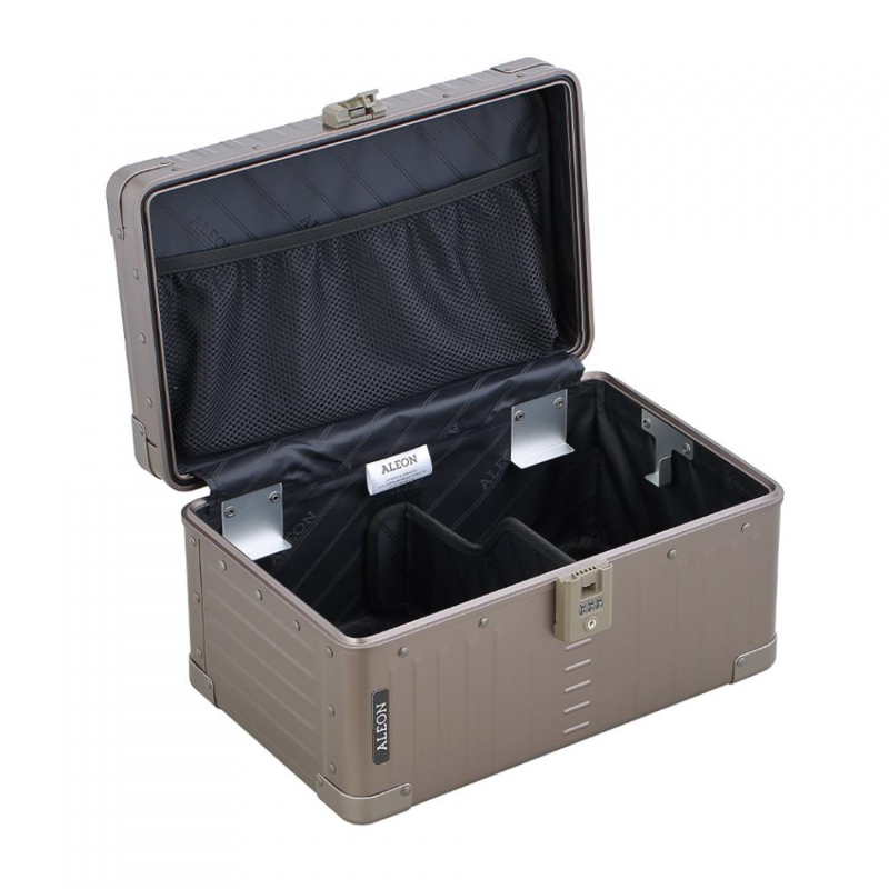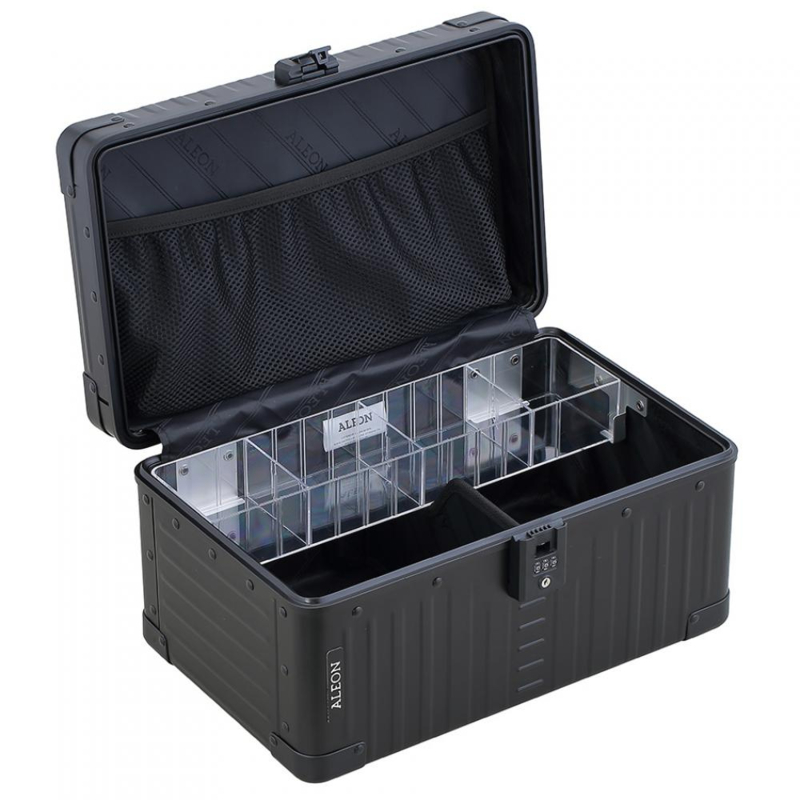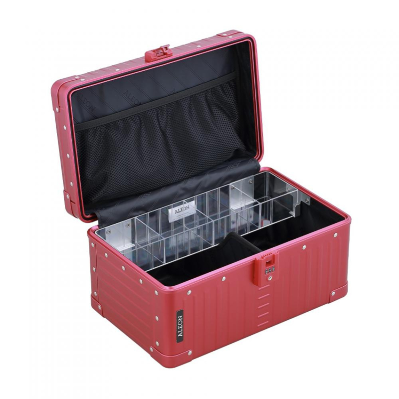 Beautycase van geanodiseerd aluminium met uitneembare lade van kristalhelder acryl (incl. 3 tussenschotten voor individuele onderverdeling)